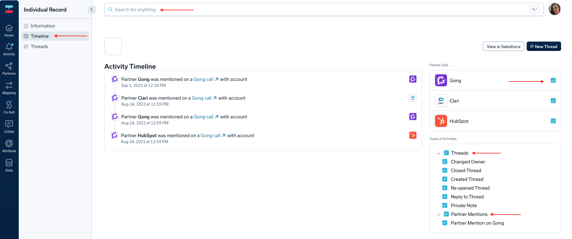- Data-driven Decision Making: The integration allows you to access comprehensive data from Gong's call recordings and Crossbeam's partner activity timeline, empowering you to make informed decisions and optimize your sales and partnership strategies.