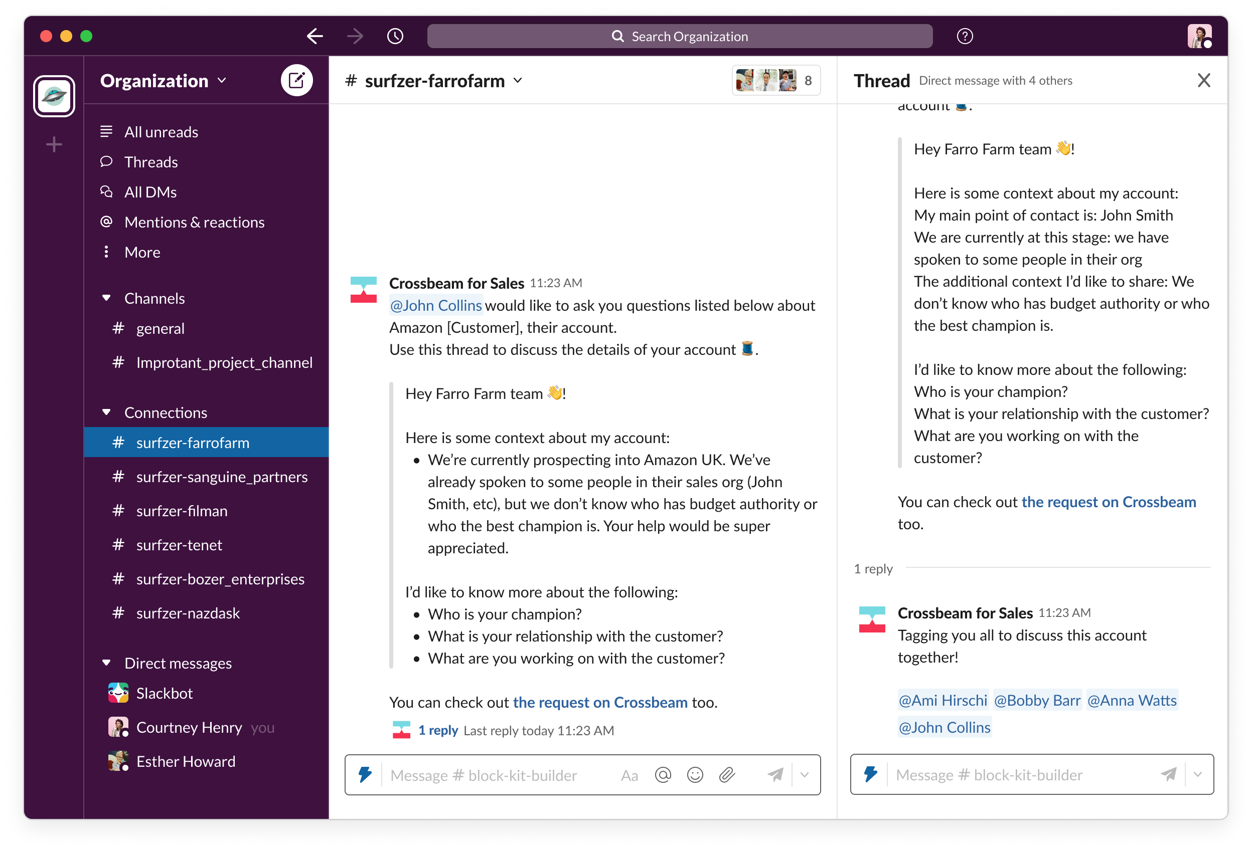 - Leverage co-selling templates directly from Slack to uncover key insights in sales processes for prospects