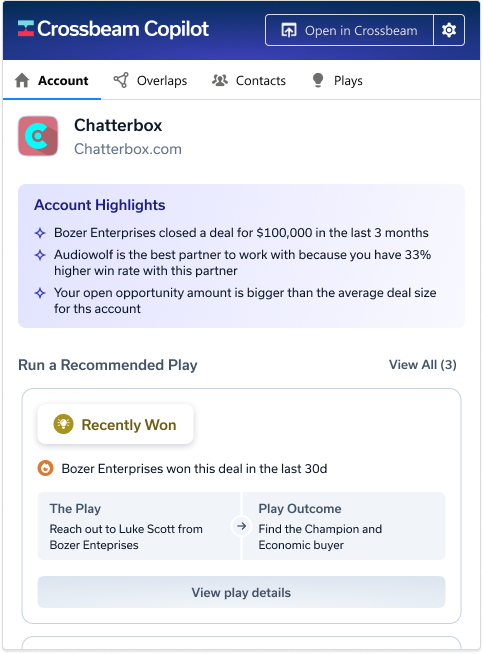 Crossbeam Copilot for Salesforce (Salesforce Widget)